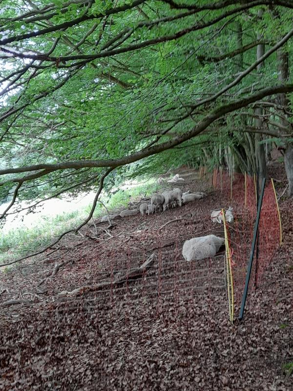 2 Zwischenfälle gab es heute. Immer das gleiche Lamm, Esther. Madame hat eine Vorliebe für Brombeeren. Nicht gut. Als historischen Gründen ist das noch ein Thema auf der Lummerke. Und wenn ich auch jedes Jahr nachpflege. Und so hing Esther heute 2 mal fest in auf dem Boden kriechenden, einjährigen Brombeerranken.