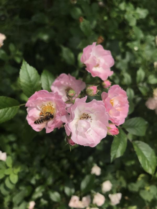 Die Kirschrose blüht schon einige Zeit, deswegen sind die Blüten nicht mehr taufrisch. Ich hoffe, Du kannst damit Deine Kirschrose identifizieren, Nova Liz.