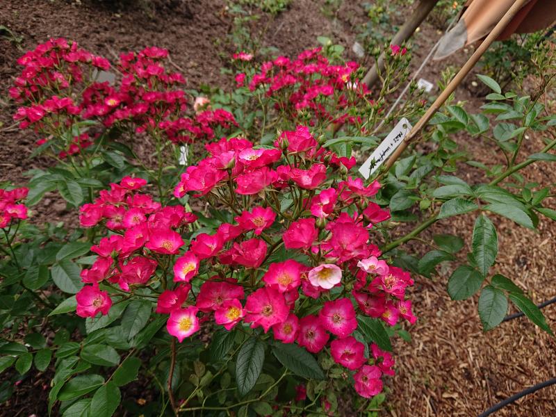 Die Kirschrose blüht schon einige Zeit, deswegen sind die Blüten nicht mehr taufrisch. Ich hoffe, Du kannst damit Deine Kirschrose identifizieren, Nova Liz.