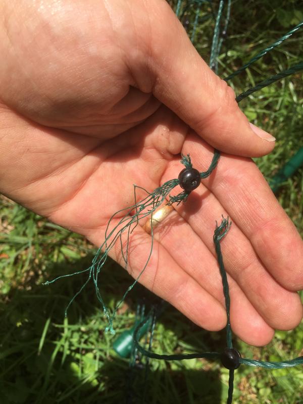 beim letzten Hühner umsetzen fiel mir wieder ein neues Loch im Netz-Zaun auf.