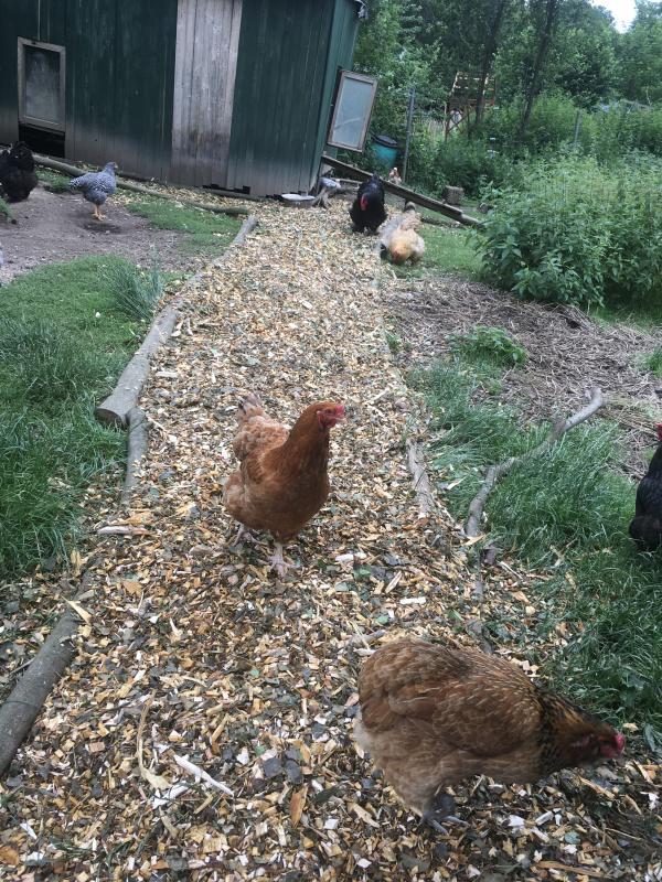 Tonic ist sehr auf mich fixiert und ist eigentlich immer "bei Fuß", auch wenn die anderen Hühner woanders sind.