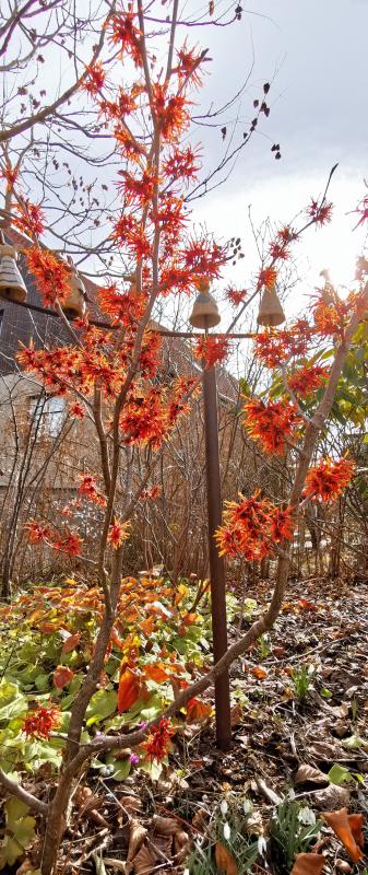 Eine Hamamelis fängt hier im Garten auch relativ früh "Feuer"