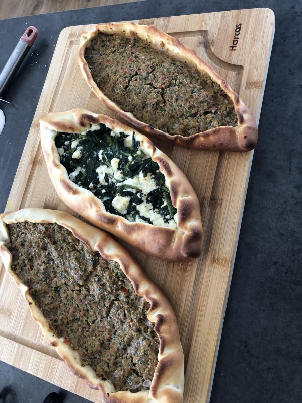 gestern mit Brie, Tomaten und Schinken gefülltes Fladenbrot.