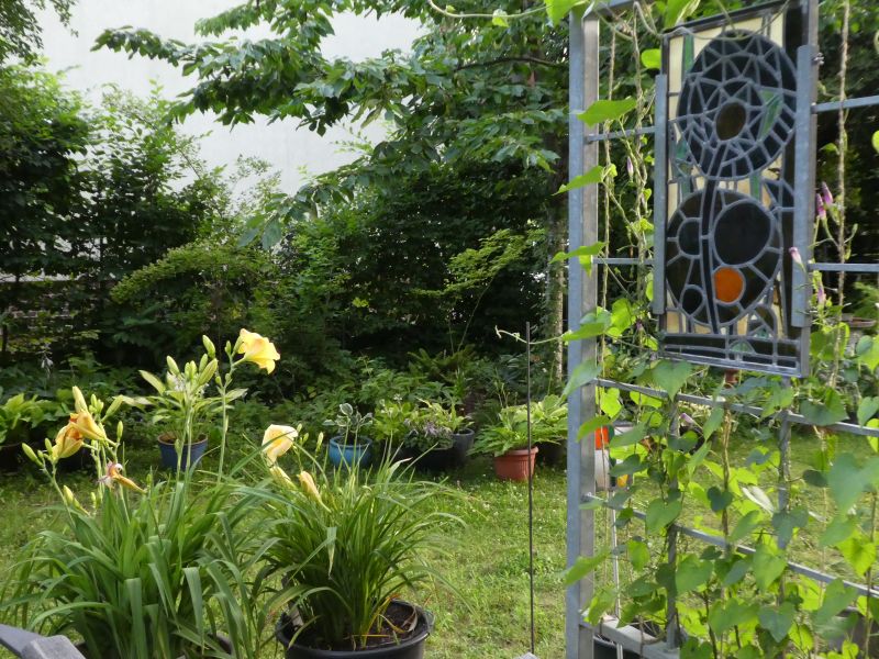 Sieht jetzt viel heller und "aufgeräumt" aus. Obendrein ein schöner Zwischenlagerplatz für Funkien, die demnächst in den Vorgarten umziehen sollen.