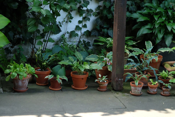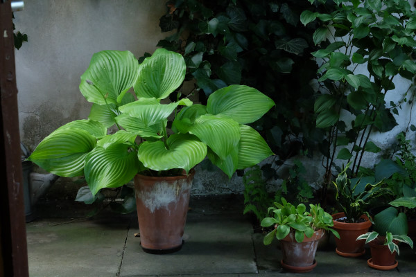 Dies ist noch so eine Überlebende des Hosta-Massakers im Nachbargarten, ebenfalls völlig anonym. Ich hatte die zerfledderten Teilstücke erstmal getopft und sie hat sich gut erholt. Hat jemand eine Idee bezüglich möglicher Sorten? Extrem dickes ledriges Laub, Blätter wölben sich an den Rändern so tellerförmig nach oben.