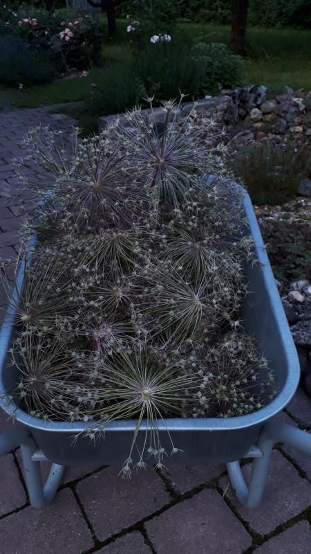 Die Kübel (Tomaten, Kartoffeln und Oleander) gegossen und die Samenstände der Allium Schubertii am weiteren Aussamen gehindert...