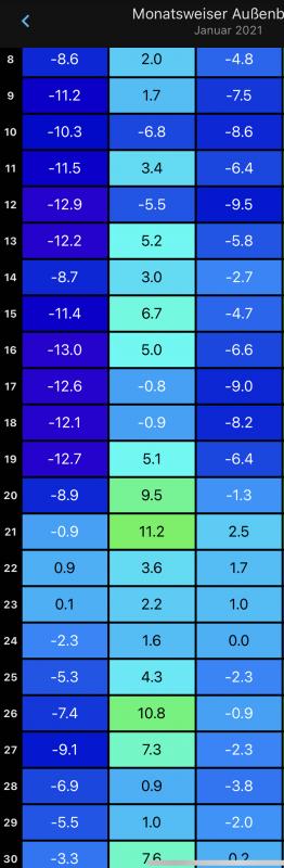 Jahreswerte 2021… geht aber noch weiter die Liste mit 57 Frosttagen, davon 12 Eistage.