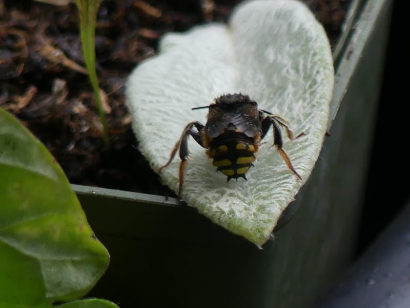 Bei mir hat eine Wollbiene einen Gang einer MDF-Nisthilfe belegt. Bisher verhaltensunauffällig. Ich hab letztes Jahr extra einen stachys gesetzt, der ist aber mickrig geblieben. Ich glaube die Wolle hat sie von lychnis oder verbascum. Sieht jedenfalls sehr bequem aus.