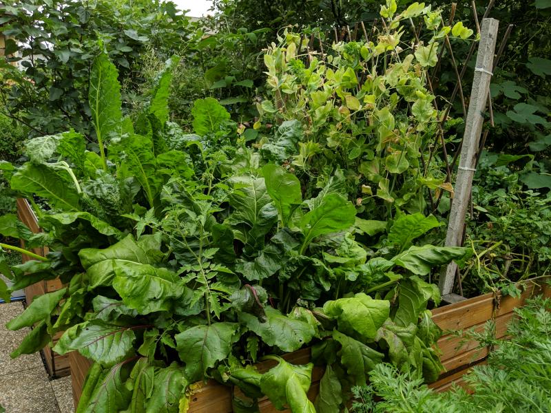 Momentan wächst alles so toll. Bei den Buschbohnen beginnen sich jetzt erste Schoten zu bilden.