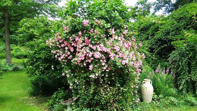 Diese no name Rose wuchert über einen abgesägtnen Schwarzerlenstamm. Mal schauen wer sich da durchsetzt.
