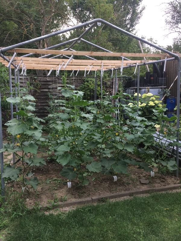 Ich habe gestern mit der Gurkenernte angefangen. Am 30.5. wurde gepflanzt, 28 Tage später die erste Gurke. Es sind noch nicht alle von den 4 Sorten wirklich voll im Ertrag, deshalb von 8 Pflanzen in 2 Tagen nur 19 Früchte.