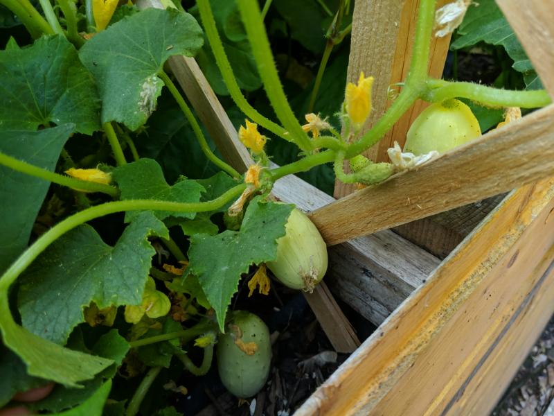Bei mir geht es schön langsam auch los mit der Gurkenernte. Noch erreichen sind die Gurken recht klein, wobei ich hauptsächlich kleine Sorten angebaut habe, aber ich kann jetzt jeden Tag ein paar Gurken ernten. Hier am Bild ein paar weiße Minigurken.