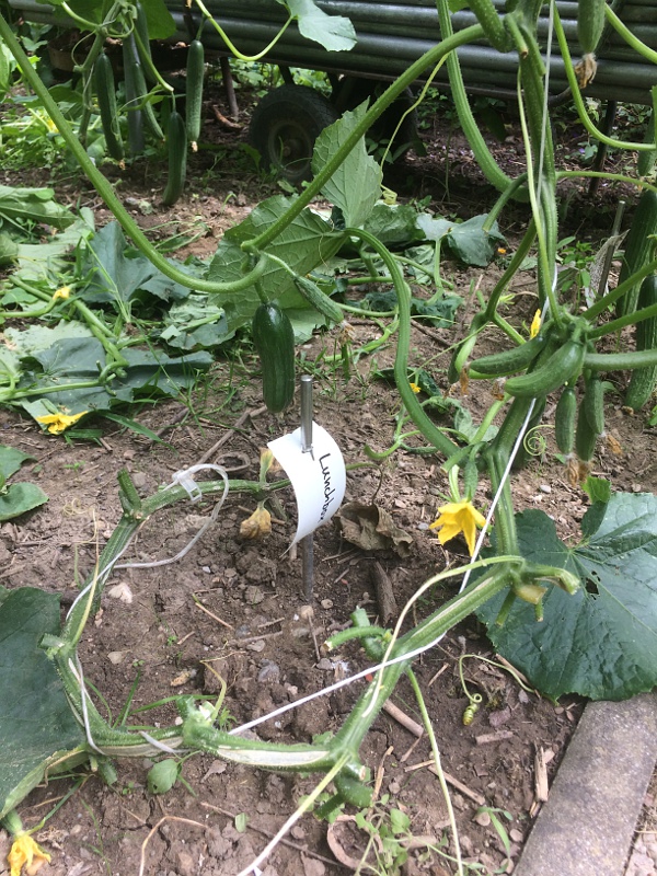 Im Gewächshaus habe ich dieses Jahr neben Tanja noch Marketmore, eigentlich eine Landgurke, aber sie wächst bombastisch im Gewächshaus und fruchtet wie verrückt. Trotzdem mag ich die Tanja lieber, schöne große Gurken, kaum Fruchtfleisch wenn zeitig geerntet!
