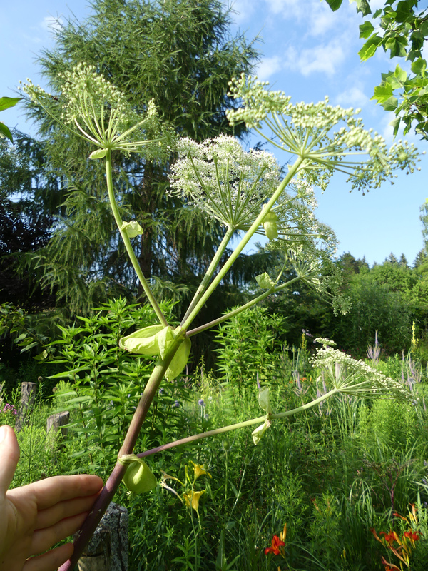 Inzwischen blüht auch Angelica dahurica an schlecht zu fotografierender Stelle und ja, ich muss zur Blüte aufschauen. ;)