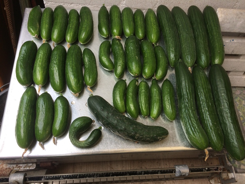 Meine Gurken tragen auch gut , im Moment können wir sie noch so essen , schmorgurke dürfen noch schön dick wachsen die werden dann lecker gebraten