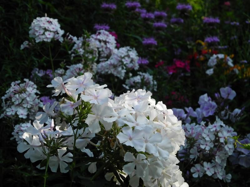 Hier wird es inzwischen schwierig, im "Blütendschungel" an jeden Phlox heranzukommen, um zu fotografieren. Ich habe einfach Angst, wie ein Trampeltier "durchzubrechen" und Blüten oder Pflänzchen zu beschädigen.