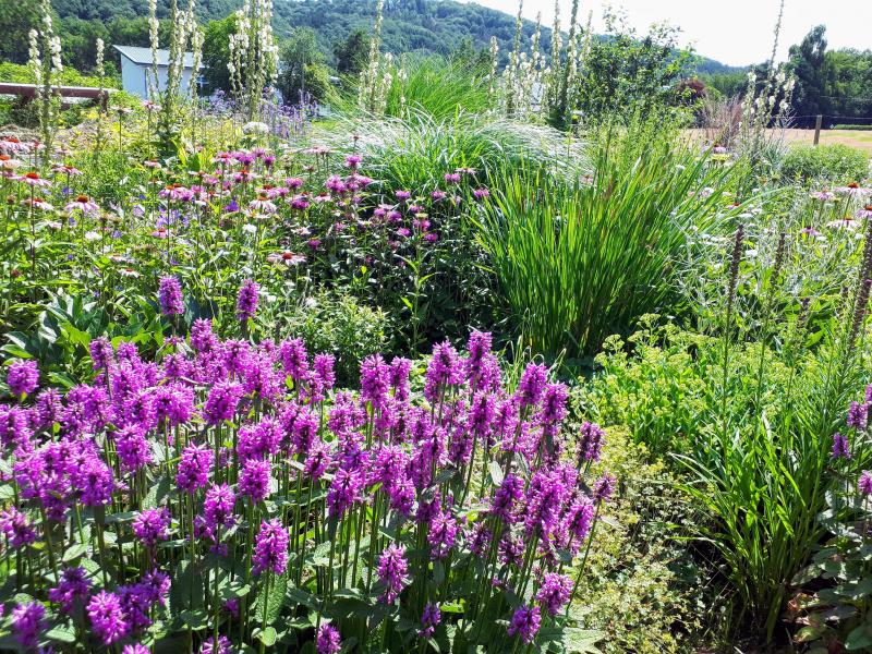 Für mich erstaunlich wie üppig alles wirkt, obwohl ich nach dem Dauerregen schon karrenweise Umfaller geschnitten und abgefahren hatte. Den übrigen Stauden und Gräsern scheint die Feuchtigkeit eher gut zu tun. ;)