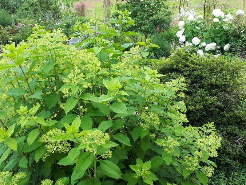 Danke Euch, ja den Thread von 2011 habe ich gelesen. Da war so ziemlich ALLES beim Rückschnitt möglich. :P Ich hoffte ja, es hätten sich in den10 Jahren die Erfahrungen bestätigt oder nicht. Oder aber es gäbe neue Erkenntnisse bezüglich Annabelle. Limielight und andere H. paniculata werden von mir im Frühjahr auf ein Grundgerüst von etwa 1/4 der Höhe zurück geschnitten und stehen immer wie eine Eins. Das Problem liegt einzig bei den Waldhortensien. Da sie immernoch- gerade in modern gestylten Gärten- sehr zahlreich Verwendung finden, müsste es doch eine einfache Lösung geben ! Hier nochmal aktuelle Fotos... Vorne Limelight, hinten Annabelle. :-[