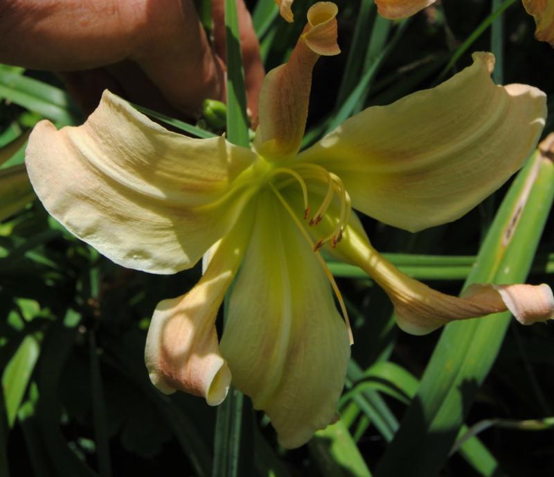 Hab ich gehabt. Eine Weile hatte ich ja auch mehrere Taglilien von Marc King, jetzt nur noch eine, Vanessa Arden (hier mit dem für Marc King typischen seitwärts Zusammenrollen der Sepalen).