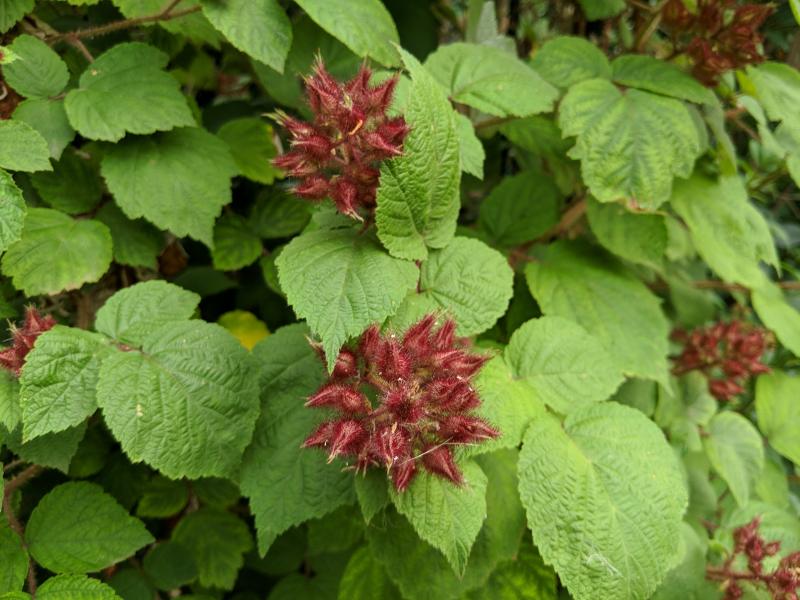 Was Obst betrifft, so warte ich momentan sehnsüchtig darauf, dass die japanischen Weinbeeren reifen. Geblüht haben sie schon vor einiger Zeit, jetzt müssen sich die Knospen nur erneut öffnen.