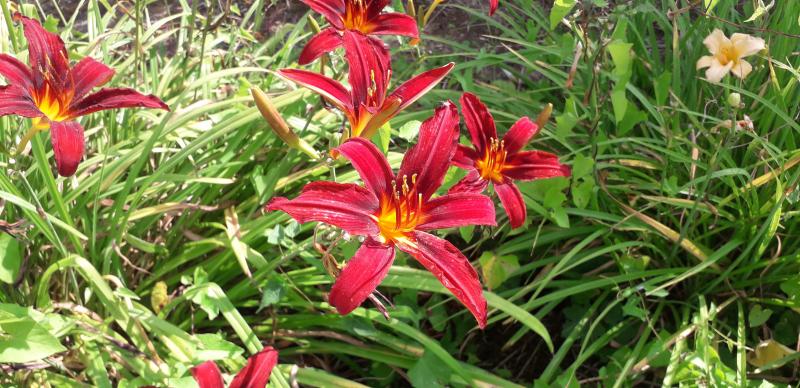 Letzten Herbst hatte ich meinen Taglilienstreifen (alte und uralte Sorten, die Guten aus dem Forum sitzen woanders) an der Grenze zum einen Nachbarn vom Gehölzwildwuchs von dort befreit. Das muss ich wohl regelmäßiger machen, die hinterm Zaun lauernden Monster setzen schon wieder zum Sprung an ::). Manche Stellen sind noch etwas verhuscht, andere Ecken kann ich aber wieder ansehen, ohne mich über die Maßen aufregen zu müssen. Das Bild ist leider nicht gut.