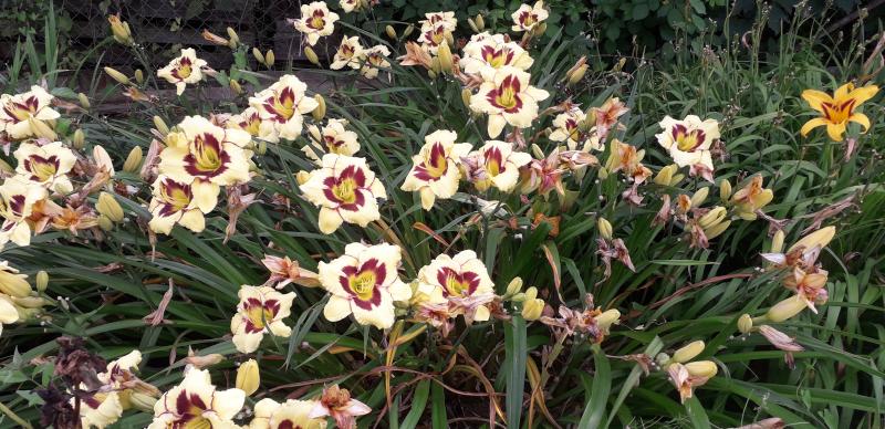 Letzten Herbst hatte ich meinen Taglilienstreifen (alte und uralte Sorten, die Guten aus dem Forum sitzen woanders) an der Grenze zum einen Nachbarn vom Gehölzwildwuchs von dort befreit. Das muss ich wohl regelmäßiger machen, die hinterm Zaun lauernden Monster setzen schon wieder zum Sprung an ::). Manche Stellen sind noch etwas verhuscht, andere Ecken kann ich aber wieder ansehen, ohne mich über die Maßen aufregen zu müssen. Das Bild ist leider nicht gut.