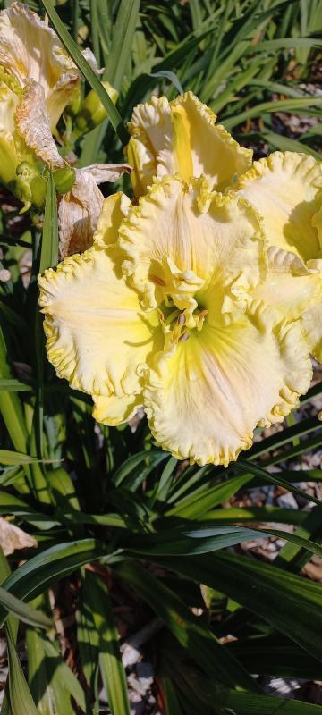 Ich würde aber wetten, dass du NBT alsbald wieder rausschmeißen würdest, Pearl, denn du bist jemand, der auch die Pflanze im Ganzen betrachtet. Und da hat NBT proportionstechnisch ein Manko. Die Blüten sind wunderschön, keine Frage, aber sie sind ziemlich groß und die Blütenstiele dafür sehr kurz, so dass die Blüten kaum über den Laubschopf hinaus kommen. Das war mal so Mode in der Taglilienzucht.