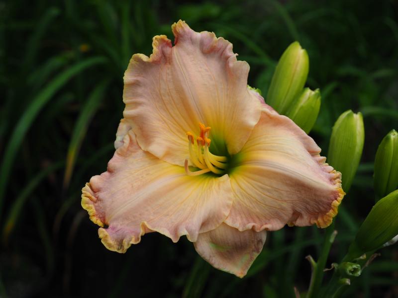 heute Nacht hat es geregnet, die Taglilien sehen heute Morgen besonders schön aus. Ich will euch wieder mit immer denselben Sorten langweilen. Zuerst Brautkleid, die noch etliche Knospen im Vorrat hat.