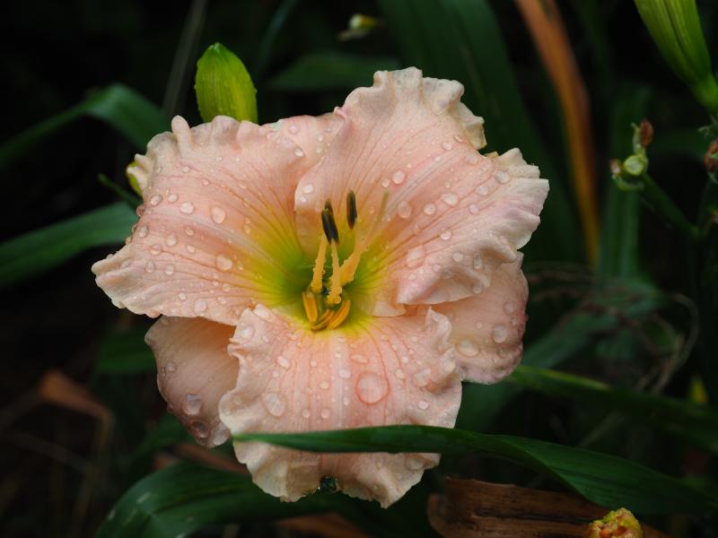 heute Nacht hat es geregnet, die Taglilien sehen heute Morgen besonders schön aus. Ich will euch wieder mit immer denselben Sorten langweilen. Zuerst Brautkleid, die noch etliche Knospen im Vorrat hat.