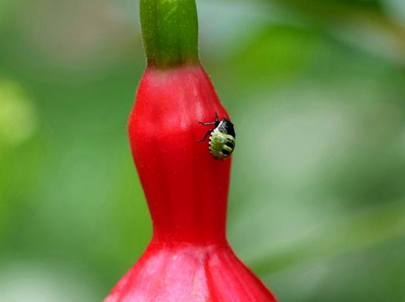 Edit: ich vermute auch eine Stinkwanze. Die Reiswanzennymphen sind in dieser Größe an meinen Tomaten noch schwarz.