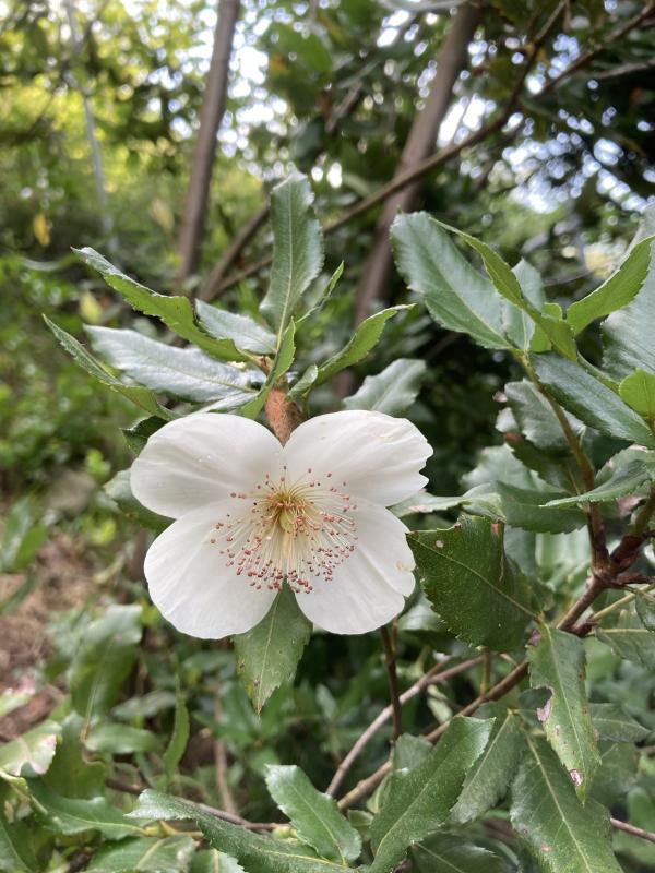 Endlich gibt‘s seit dem Auspflanzen vor 5 Jahren auch draussen die 1. Blüte der Eucryphia, Sorte weiss ich leider nicht.