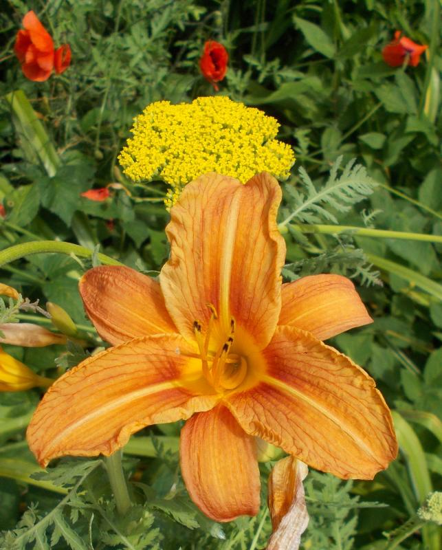 Beim Durchsuchen diverser Juli-Fotos gefunden: dieses Ensemble aus Papaver, Achillea und Hemerocallis vom 11.7. – ich schwöre, ich habe nichts arrangiert ;)