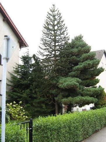 Ein wunderschönes Exemplar steht im Hausgarten von Thomas Kustermann in der Nähe von Gelnhausen, in Niedergründau. Sie wurde vor rund 35 Jahren gepflanzt und ist jetzt rund 12 m hoch. Dort wird es auch mal unter minus 15 Grad. Hat die aber locker weggesteckt! Noch größere Araucarien kann man am gesamten Niederrhein, sowie in vielen Gärten im milden Baden, in der Schweiz und im Elsass sehen.Mich würde durchaus interessieren, wo das "östlichste" größte Exemplar in Bayern oder Österreich steht.