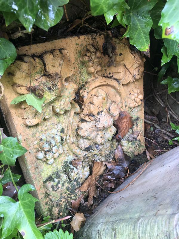 Es gab wohl so "Dekorplatten/Kacheln" für gründerzeitliche Fassaden, so eine hab ich (auch mit Weinlaub, interessanterweise...) und daran erinnert es mich etwas...