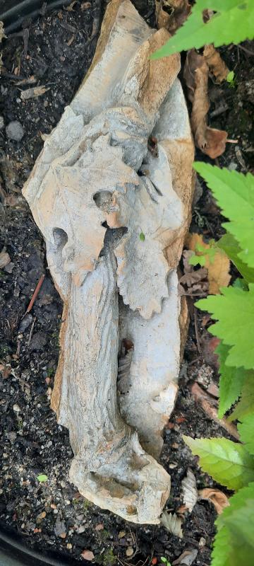 Dieses Frühjahr tauchte dieser Stein unverhofft im Gemüsebeet auf. Feuerstein gibt es hier. Dieser scheint mir behauen und wirkt wie ein kleiner Faustkeil. Liegt auch garnicht so schlecht in der Hand 8)