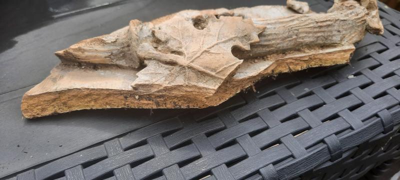 Es gab wohl so "Dekorplatten/Kacheln" für gründerzeitliche Fassaden, so eine hab ich (auch mit Weinlaub, interessanterweise...) und daran erinnert es mich etwas...