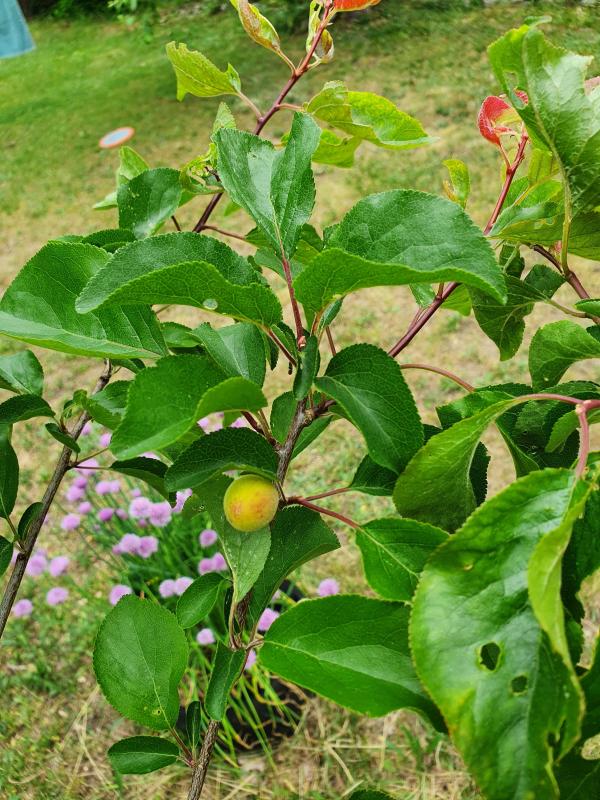 Nur noch ein Sandkirschenhybrid haben sie da (Prunus pumila var. Besseyi x Prunus salicina x Prunus cerasifera).