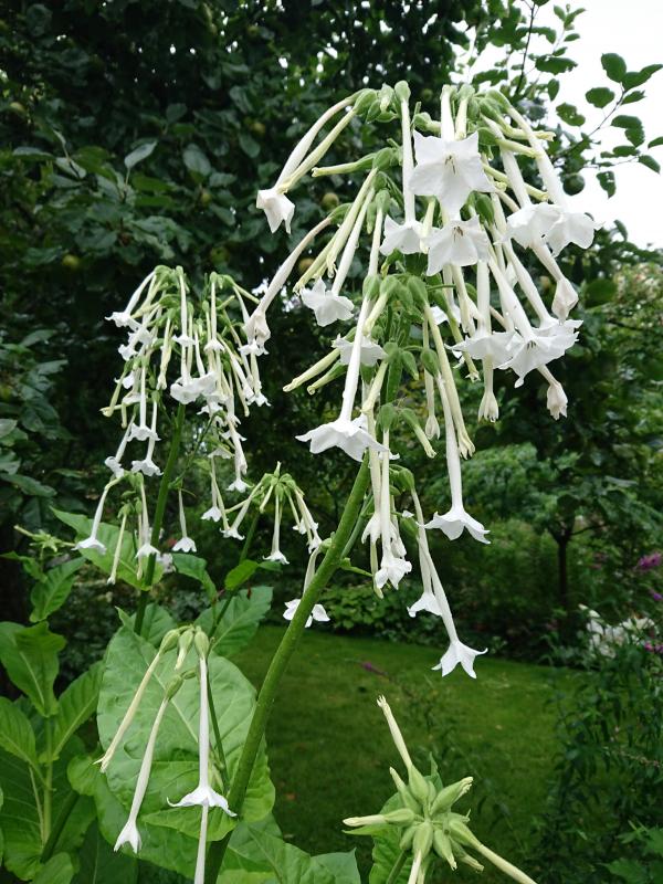 Der Waldtabak Nicotiana silvestris blüht ab jetzt bis zum Frost und duftet! Leider habe ich noch keine Schwärmer beim Besuch beobachten können.