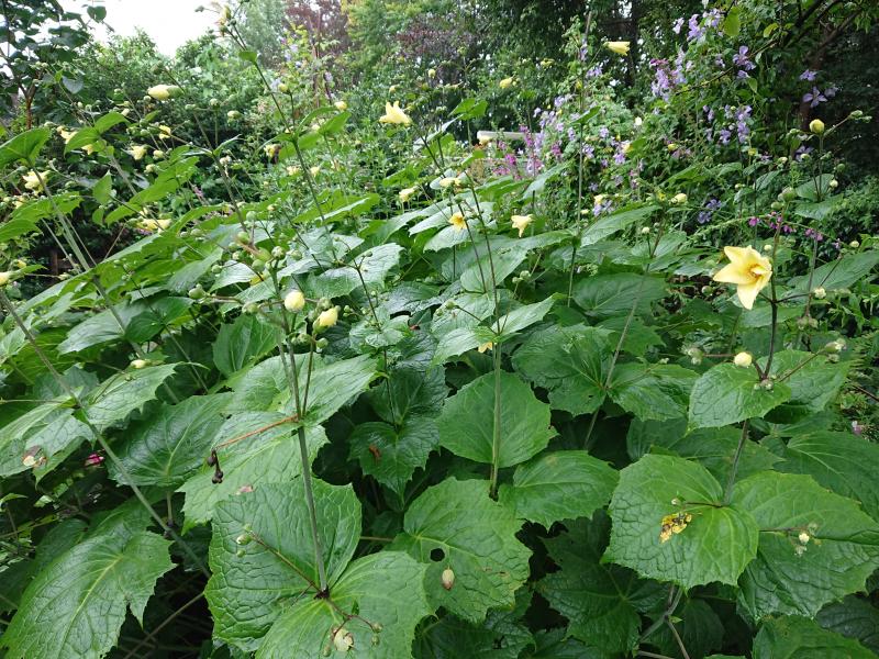 Nach dem vielen Regen beginnt auch Kirengeshoma üppig zu blühen.