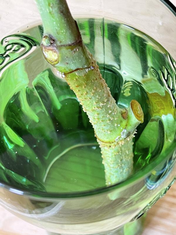 Foto: grüner GN-AF Steckling im Wasser seit 6 Tagen.