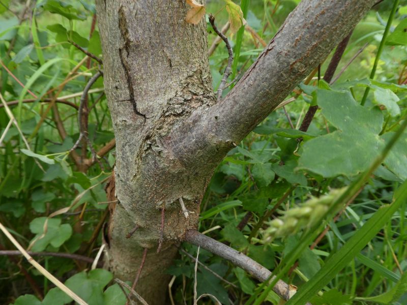 Was tun? Ganz absägen? Abwarten? Der zweite starke Seitentrieb muss jedenfalls auch weg, er ist auf dem Weg abzusterben.