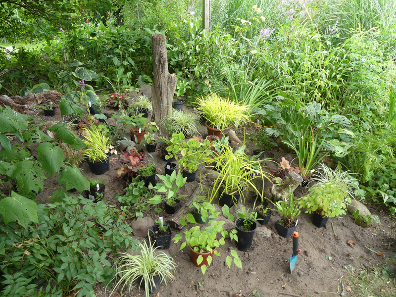 Dann stöberte ich durch's Topfquartier und sammelte ein, was schon längst einen Platz im Beet gesucht hat. Farne, Hakonechloa, Carey, Lathyrus vernus, Begonien, Heuchera, Helleborus, Epimedium...
