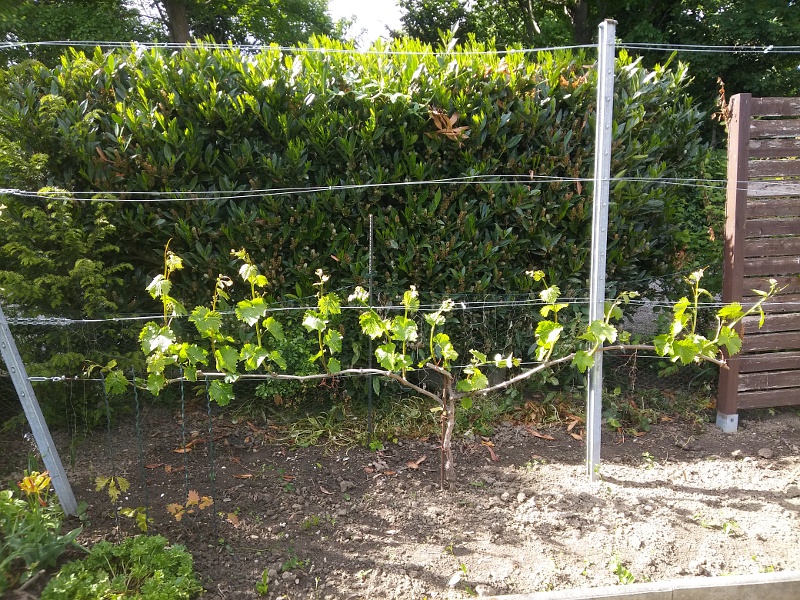 2,5 sind mir zu hoch, da oben möchte ich nicht mehr schneiden müssen. Das wären bis 2,8m Nutzlänge weil auch mal was überstehen kann ohne wegzukippen und das Mikroklima zu verfälschen, und welche Traube braucht schon 2m Nutzlänge der Laubwand (wenn die Triebe bei 80cm höhe quergelegt werden), es reichen 14-16 Blätter für 1,3kg Trauben