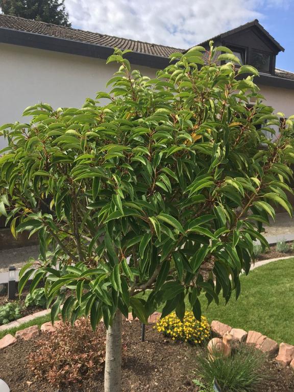 Denke es handelt sich um ein portugiesischer Kirschlorbeer, wurde im Frühjahr von Gärtnerei gesetzt.