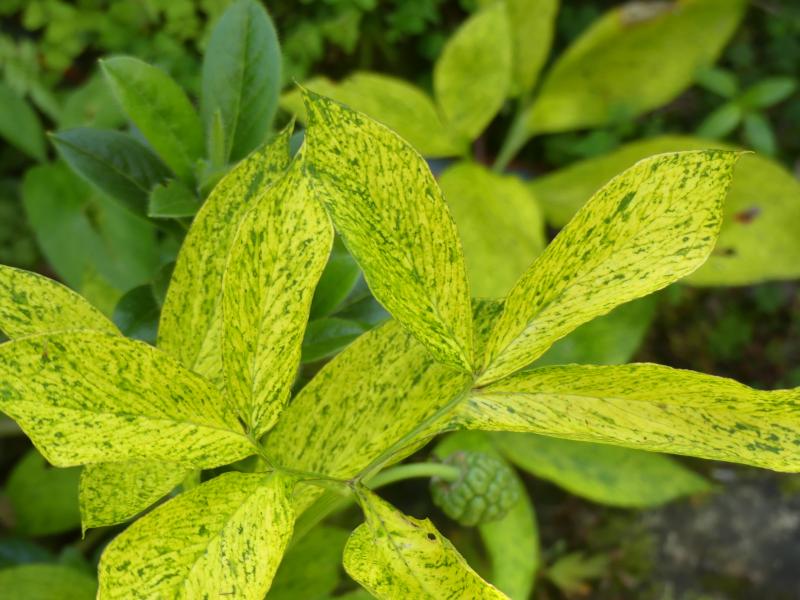 Ja, das ist A. flavum und ich denke schon, dass ein Virus die Ursache ist. Einige weitere in unmittelbarer Nachbarschaft sind auch befallen, während wieder andere weiter weg keine Symptome zeigen. Eigentlich sieht die Pflanze recht vital und nicht so richtig krank aus.