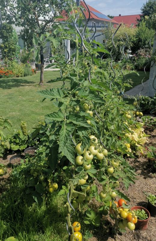 nächstes Jahr wird die Zahl der Tomatenpflanzenen reduziert und jede Pflanze wird mehr Platz bekommen.
