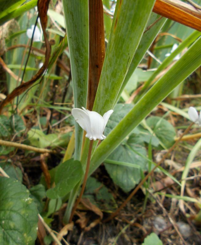 Cyclamen hederifolium, von dem weißen wächst hier ein Stück.
