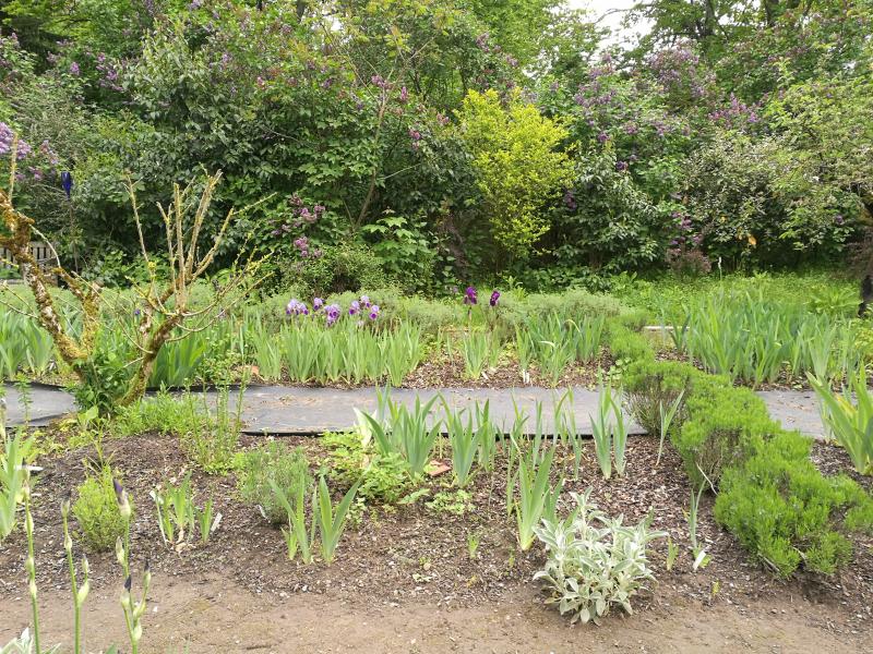 Neues Beet deshalb, weil hier frühjahrs viele Flächen mit Scharbockskraut überzogen/überwuchert sind, was Iris nicht so schätzen.