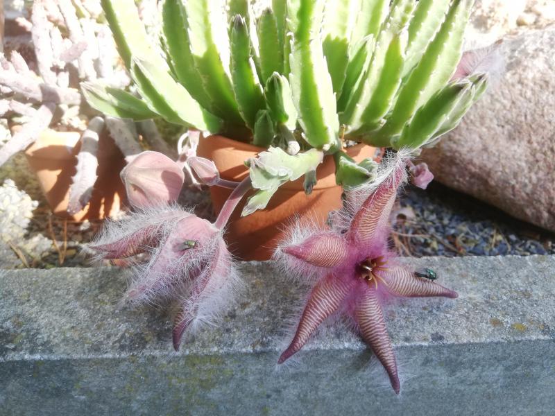 Bei mir blüht jetzt auch eine Eucomis. Die Art ist mir entfallen. Es sind sehr große Zwiebeln. Die gezeigte Pflanze ist nur eine Zwiebel. Sie reichen ziemlich unangenehm und locken Fliegen an so kommen diese wenigstens nicht mehr an den Terassentisch. Wegen der vielen Fliegen haben Hornissen die Pflanzen als Jagdrevier entdeckt.