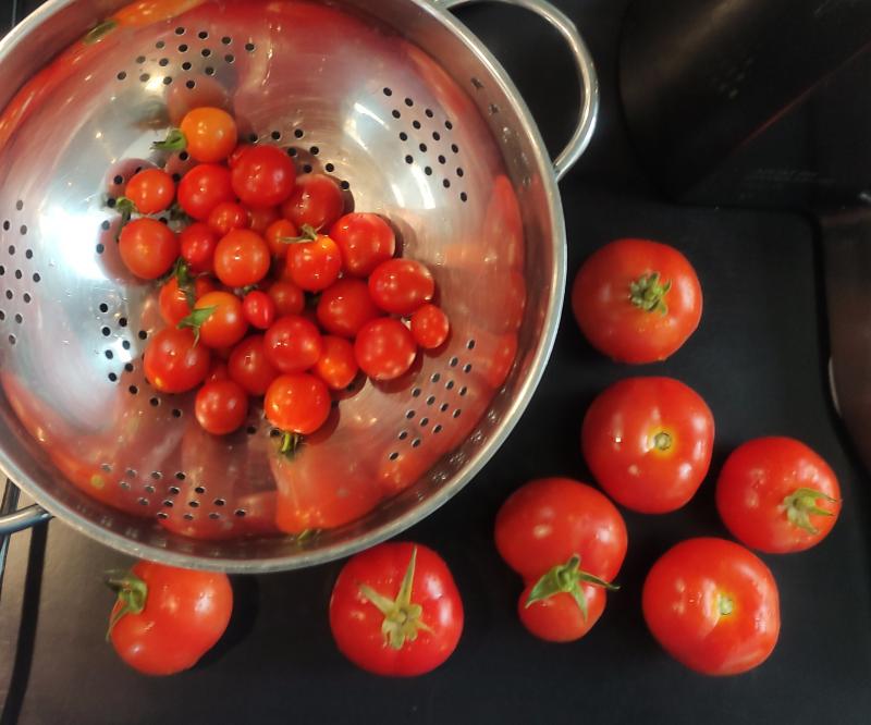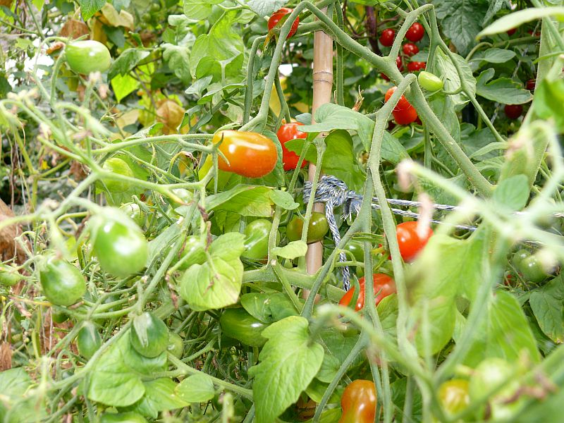 Hier ist das schlechteste Tomatenjahr aller Zeiten. Ich habe letzte Woche die letzten Pflanzen entfernt. Seit Anfang Juli zupfe ich schon ständig Braunfäulebefall ab, jeden Tag gegen Abend gabs ein paar Spritzer Regen. Nach und nach habe ich alle Pflanzen entfernt, die Tomatenrispen zum Nachreifen wurden alle von der Fäule erwischt. Insgesamt gab es vielleicht 30 Tomatenfrüchte von 30 Pflanzen diverser Sorten :P